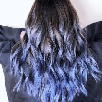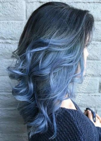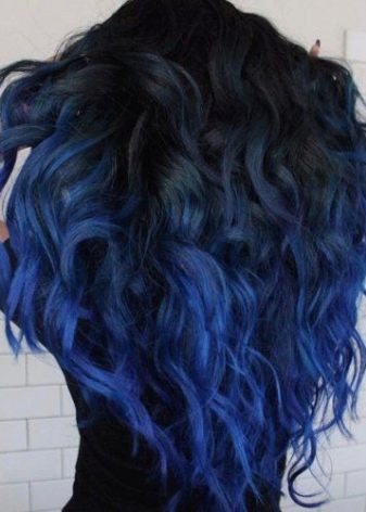 Among the bright and fashionable colors, it is worth highlighting the bold coloring of black curls in a cold blue color.
