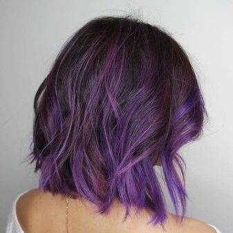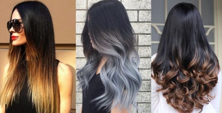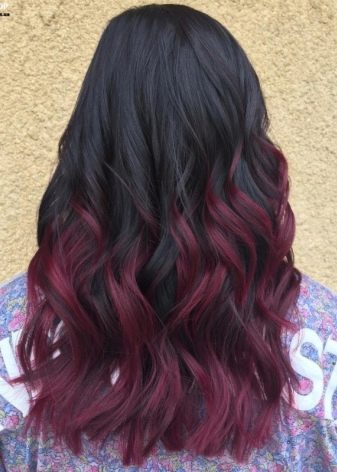 In the category of colored shades of paint, the most suitable and relevant, it is worth highlighting a balayazh with purple or burgundy strands, in addition, black straight hair can be distinguished with the help of blue tips in a smooth color transition.