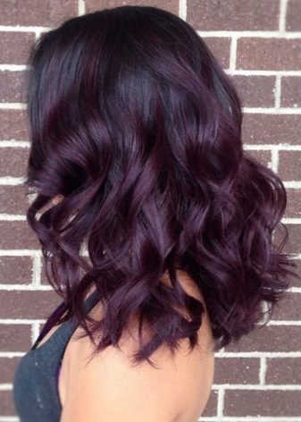 - Eggplant and black color is a great combination for those who want to stand out with unusual hair coloring. Stylists advise such a hut for girls of a winter color type.