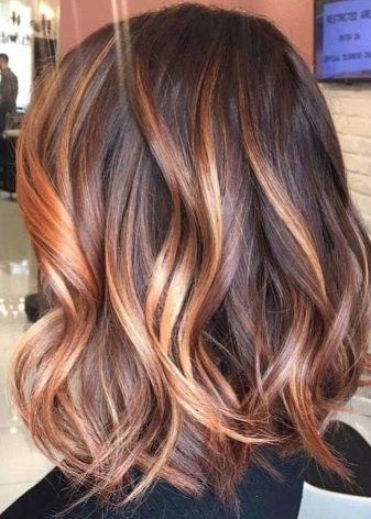 This feature allows curls to look as natural as possible, subject to the selection of natural colors for dyeing. The shades of hair will shimmer, flowing from the base dark to shades of blond, copper, mahogany or other colors, which will look equally harmonious on short haircuts or on long curls.This type of lock is acquired due to the use of two or three shades during work with hair, which harmoniously resonate with each other.