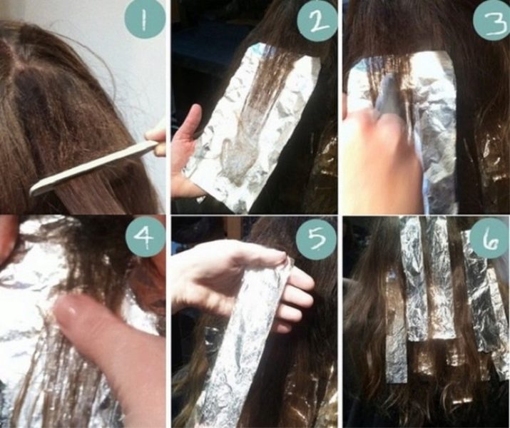 - the entire volume is divided into zones that are fixed with elastic bands, then the strands are laid out on the foil and painted;