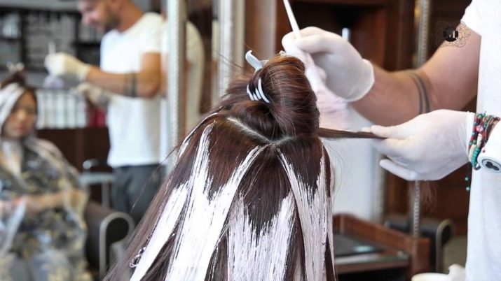 - complete stainingin which the master works with curls by analogy with bronding, several tonalities of the same color take priority in the course of staining;