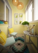 Elements of yellow should be included in the interior of the balcony, if you are going to arrange cheerful gatherings with friends or play sports here.