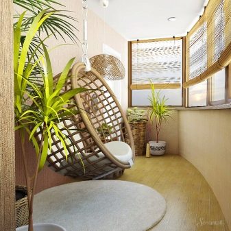 Beige creates a feeling of warmth, comfort, harmony. If there is little sun on the loggia, this color compensates for its lack. This is a great neutral tone, suitable for a relaxing pastime.