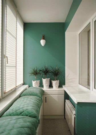 If the main thing for you is to create a stylish atmosphere, Choose a shade for the walls inside the balcony according to your favorite design direction.