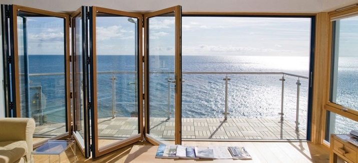 - Accordion door. This type of door is more modern. It is constructed from individual dies, which, when the door is opened, have the property of “folding” with an accordion. They have a significant minus - they are as unsafe as possible. Yes, no doubt, they look very beautiful, especially if their canvases are made of glass, but the locks leave much to be desired.