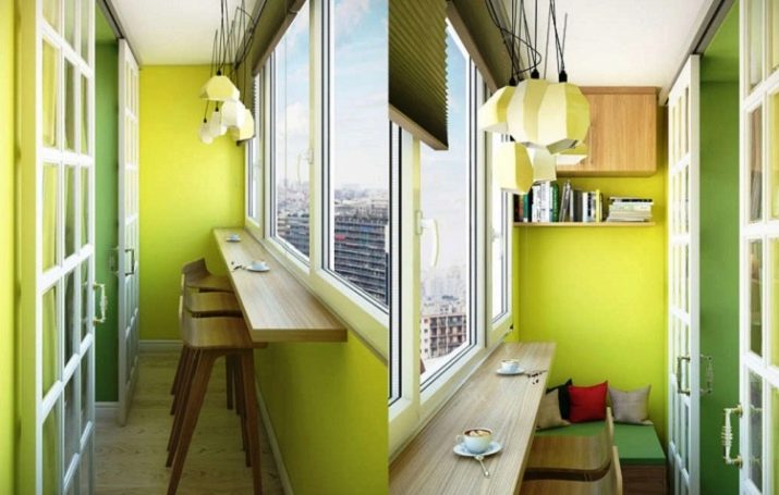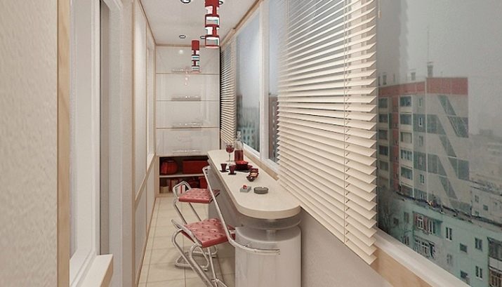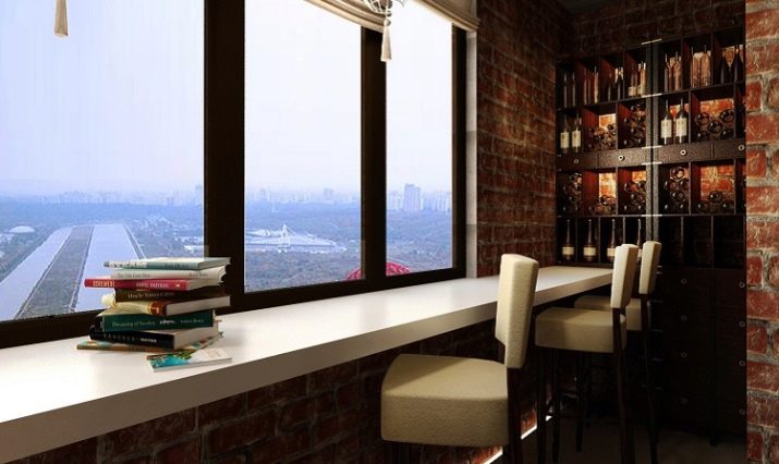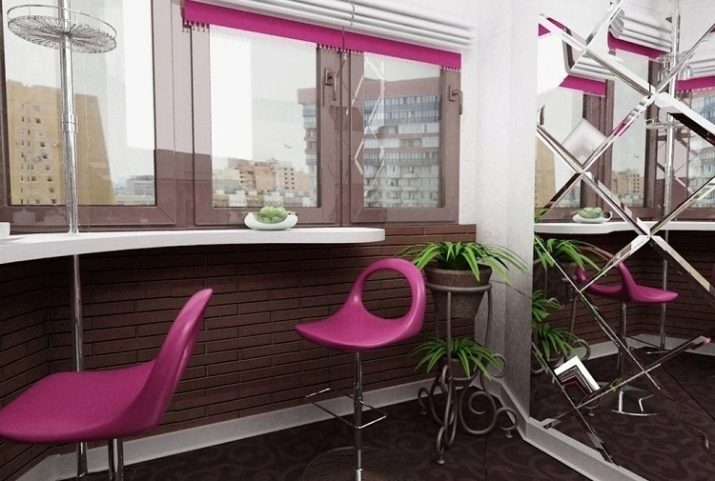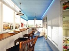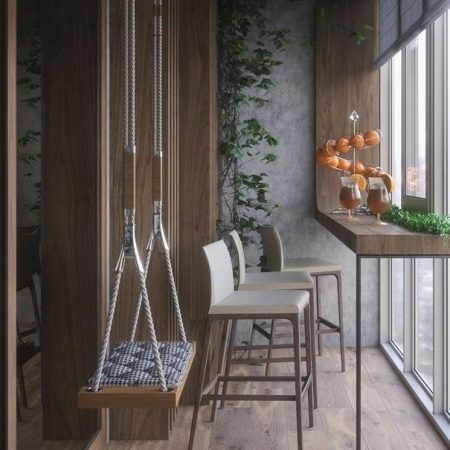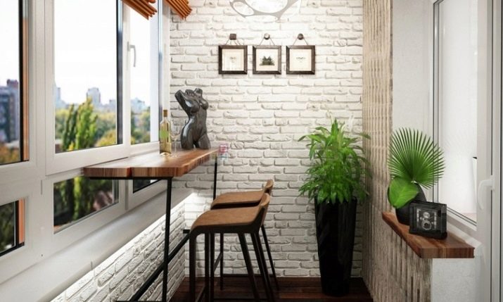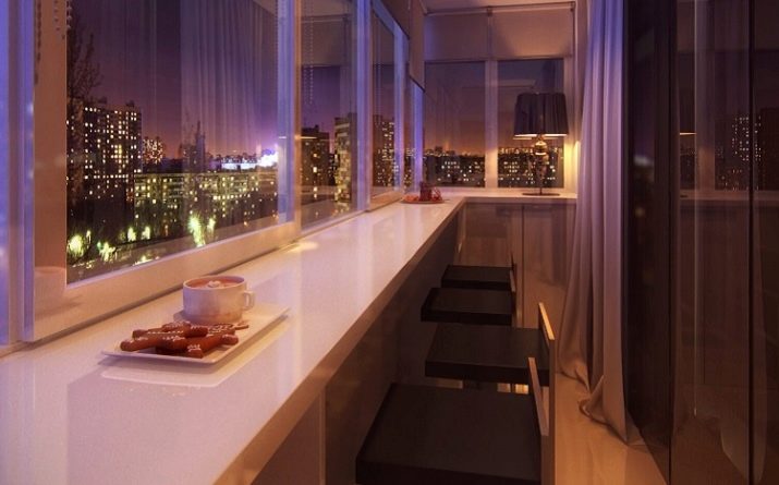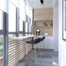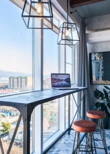 The bar counter on the balcony is quite capable of being a multifunctional thing. If the width of the countertop allows, then at the right time it can turn into a working console, on which you can put a computer and work a little for it. In the evenings, you can put romantic candlesticks on the counter, beautifully serve the countertop and arrange dinners “for two”.