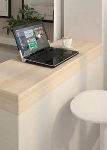 - If you do not want to make a worktop for the entire length of the balcony, refer to such solutions. But it is advisable to purchase a countertop from an array, such solidity cannot be repeated with another material.