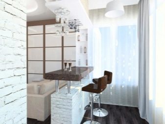 If the loggia is insulated, and the owners make a combined room in order to increase the footage, then The rack is most often placed in place of the balcony block. This usually happens in the kitchen, but there may be such an option in the living room. In this case the counter is designed for a minibar, for example.