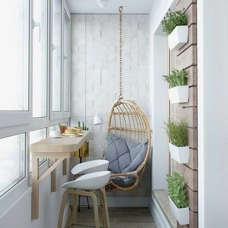 - Balconies are different, as well as the possibilities of their transformation. If the Swedish philosophy is close to you with a “lag”, then you will appreciate this example of beautiful solutions in their simplicity and conciseness.