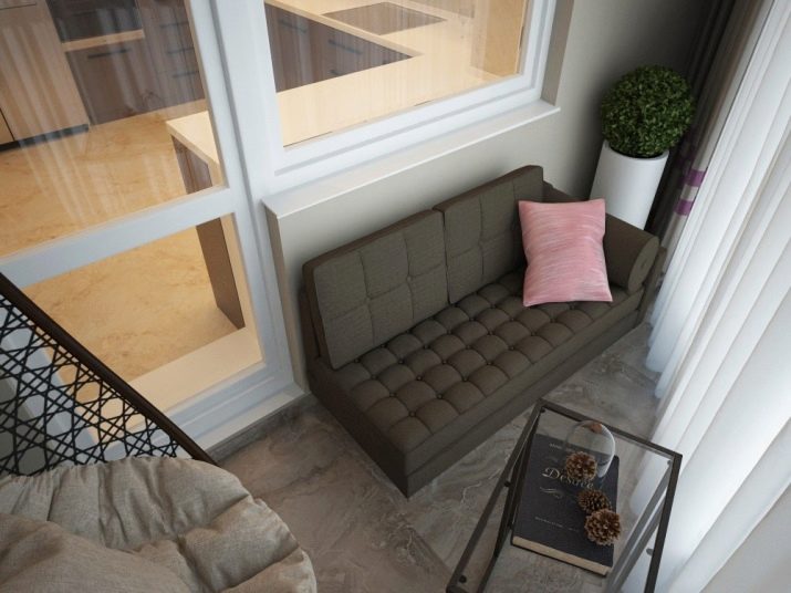 A beautiful sofa is able to transform the image of any loggia. It is important to decide which design option is closer to you. The color palette can affect the mood and general atmosphere of the room.