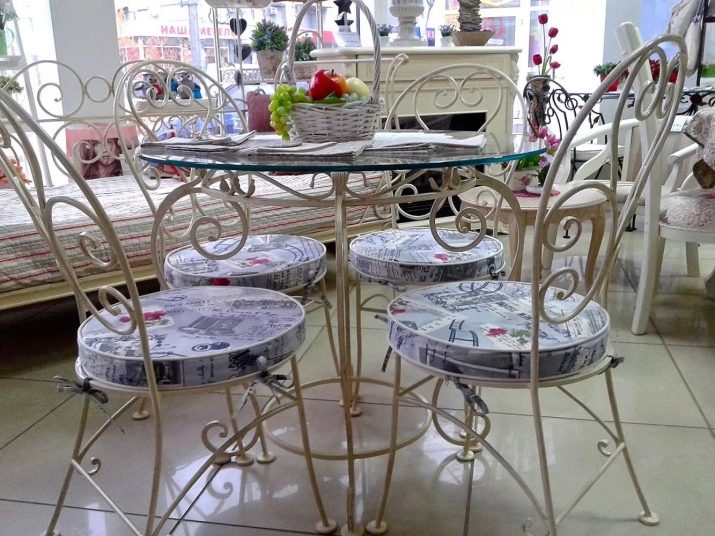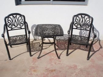 - Metal forged set with a round table. The graceful beauty of metal with openwork legs will make the interior of your balcony truly exquisite.