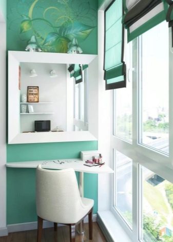 For a business person, a desk on the balcony will allow you to breathe fresh air during work. In addition, now you can create a semblance of an office where you can calmly go about your business, and no one will interfere.