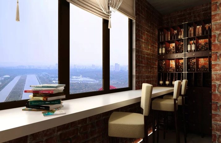 Instead of a narrow window sill, you can design a wide table on the loggia. Then it forms a kind of bar counter or room for indoor plants.
