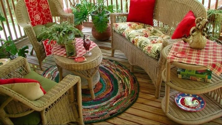 Furniture in the garden or in the country is often performed by the method of weaving from the rod. It looks simply amazing and is suitable for decorating balconies and loggias.