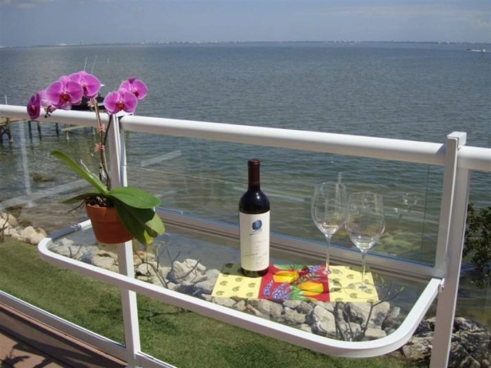 The first are hung on a railing or wall and are very mobile. The second - cling to pre-mounted elements. The removable design makes it easy to take care of the table and clean it if necessary.