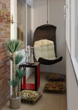 There should not be too much furniture in a small balcony. The placement of products depends on the purpose of the balcony. If you want to organize a recreation area, then a great option would be installation of a small rocking chair.