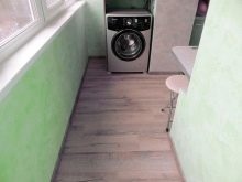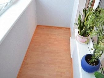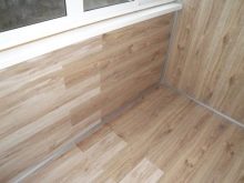 Laminate is more expensive than carpet and linoleum, but its appearance is much more aesthetic and spectacular. The material eliminates the occurrence of fungus and dangerous mold. At the same time, the coating is difficult in terms of installation - this work requires a perfectly aligned surface and finishing skills. In addition, the laminate does not withstand temperature fluctuations and prolonged frosts, so inside the balcony, even in winter, it should not be colder than -5 degrees.