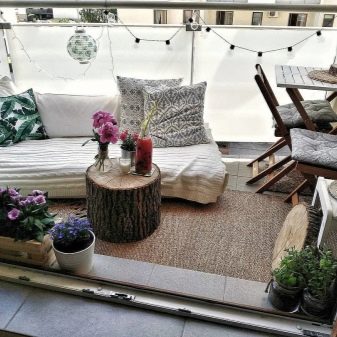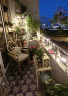 Do not be afraid of hand-made decor or interesting, fun ideas. For example, cotton and other garlands on the balcony look so that this place cannot be a priori associated with something economic and depressing. You can decorate the walls of the balcony with posters, panels, boards on a string on which you can write with chalk and so on. In the evenings, the balcony can be decorated with candles in large candle vases. Evening tea in such a place will be especially tasty.