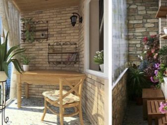 However, in a panel house, brick laying is far from always possible, which is why you have to select materials with an imitation of the desired texture. Excess weight for a balcony slab or a loggia is undesirable, because in order to create a cozy island you will have to perform a number of works on the exterior decoration, lining, glazing and insulation. And you also need to install furniture.