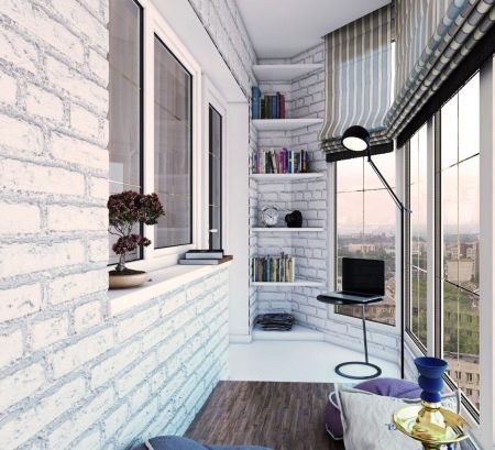 This is especially problematic for the balconies of the Khrushchevs, which today are not preserved in the best possible way. Therefore, after reconstruction, here, as in prefabricated houses, you have to use decorative bricks. Not inferior in external indicators, it saves the situation and allows you to equip the interior of a small space under a room for various purposes.