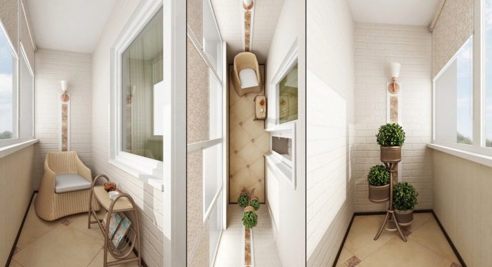 They weigh less than brick, have a small thickness and the necessary relief. This type of brick cladding is not afraid of temperature differences and does not create problems during installation. It looks very stylish and can decorate any of the walls of the balcony space.