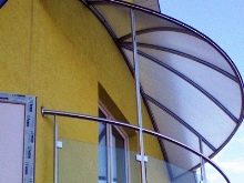 Awnings are designed in such a way that they do not allow icicles and snow layers to gather above the balcony structure. They are quite variable in engineering and design solutions and have many advantages. Dome canopies are considered expensive, but working with them is more difficult.