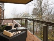 Its fence may be different, but it does not save space from rain, wind and heat. It is not worth it to put upholstered furniture, because in bad weather it will get wet. As a rule, the size of the fence does not exceed the size of the supporting plate and balcony opening.