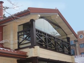 Sling options are considered the simplest and budget. Their angle of inclination is formed by triangular brackets to which the roof is attached. Gable analogues are more complex, like a gable roof, good for a corner-type balcony. A distinctive feature of these modifications is the strength and resistance to weather, which will solve the problem of accumulation of snow on the roof.