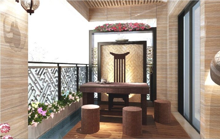 - An example of arranging a balcony space with the creation of a cozy corner.