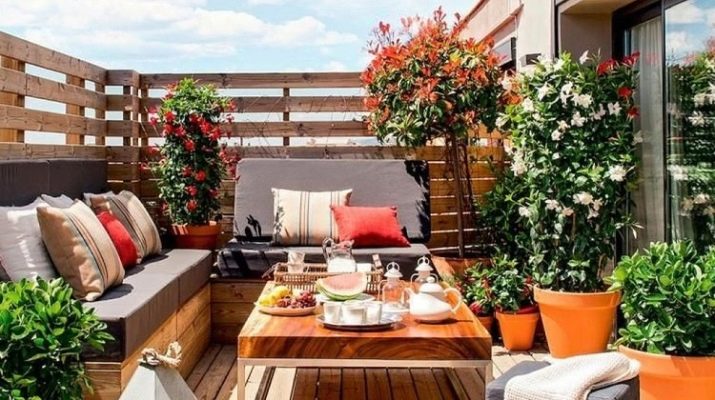 - A rational approach to the arrangement of the balcony area will relieve the interior of the home.