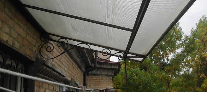 Hinged structures are made of slate, ondulin, polycarbonate, corrugated board, as well as metal tiles. Mounted systems are distinguished by their characteristics. Some of them are able to suppress the noise level, others are more durable and immune to ultraviolet radiation. Visors can differ in design and, in addition to marquise variations, can be single, gable, domed and arched.