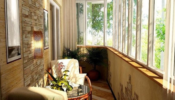 Internal walls can be wooden, painted, concrete, lined. Concrete structures have more opportunities for decorating the balcony space, because the tree shrinks during the entire period of operation. Depending on the desire and design idea, the walls (or one of them) can be designated with wallpaper, plastic panels, plaster, veneers, clinker and decorative stone.