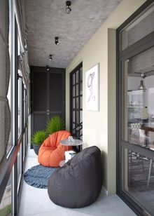 The balcony, which is furnished in the loft style, is a real sip of freedom, in many cases it allows you to emphasize the lifestyle of a truly creative person. Volumetric space, minuscule furniture, creative decor elements - this atmosphere will suit both a young family and a bachelor with a creative type of thinking.