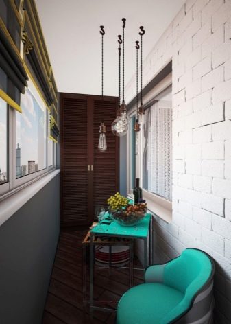 When arranging lodges and balconies in the loft style, you can stop the choice in rich bright colors, which will help to create a nice combination with the furniture used. You can paint one of the walls of the balcony or part of it in a catchy unusual color. This kind of effect will help to dilute the boring design.