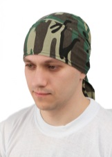 - Fabric: you are free to choose any material that will be pleasant to the tactile sensations, will delight the eye with its color and pattern (or lack thereof), will protect against certain weather conditions. Classic bandanas are made of thick fabric. For example, cotton is a very durable and non-deformable base for a fashionable and practical accessory. Natural silk that repels the sun's rays and gives birth to its natural chill, of course, if the color is not black.