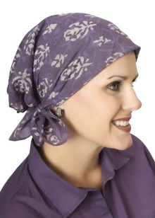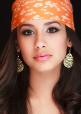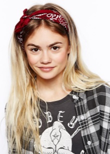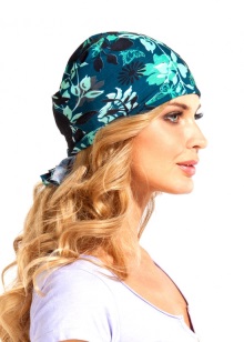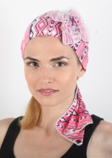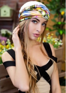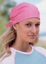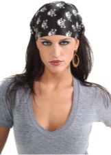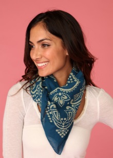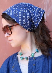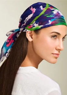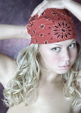 Bandana on the head as a scarf. How to tie a square flap of fabric on your head to make it look stylish? Very simple. To do this, it is necessary to fold equilateral material diagonally, thereby forming a triangle. With a fold, we attach a bandana to the forehead above the eyebrows, tie the two extreme corners on the back of the head. We fill the free corner of the triangle under the knot and knit tight again.