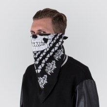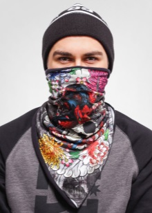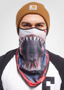 - extreme. This type of bandana includes ski and snowboard face packs. They protect the athlete’s face not only from frost, but also from snow flying out from under the inventory. Recently, the most popular are original snowboard bandanas with aggressive prints with jaws, fangs or just ridiculous facial expressions;