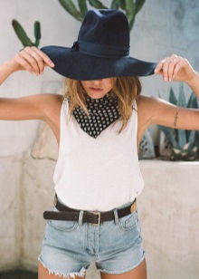 - Cowboyly. To do this, we again have to fold our fabric square into a triangle. Next, we bend its base of a centimeter by 3-4, depending on the size of your bandana. The wide side is applied to the outside of the neck, and the long narrow ends start back. We cross and return forward, tying a small knot on a tight one. It should be remembered that the fixation of such a scarf should not be too tight. This method of tying protects the neck from wind, sun and even frost.