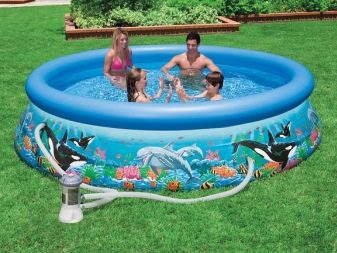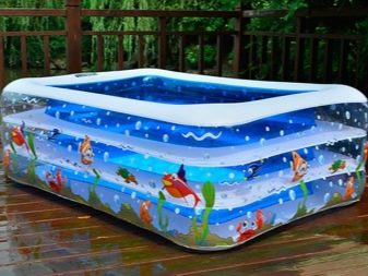 The product provides air filling exclusively rings located along the edges of the tank. The annular board, filling, pulls the walls of the tank. The reliable model characterized by the increased durability. There are small and large options that provide the opportunity to swim, dive. Particularly large specimens can accommodate up to 12 people. Some models are complemented by accessories. For example, swimming goggles, like Intex's pirate inflatable pool. The set includes 3D glasses - 2 pairs, coins.