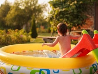 Pupils, children 6-10 years old prefer active water games. Constantly moving, fidgets provoke the release of energy. Freezing them is more difficult. The temperature norm of water in these circumstances is + 24 ° C. Naturally, it is necessary to control the time of bathing the child. A thermometer will help to monitor the temperature regime. Owners of an inflatable product should get a repair kit. It includes glue, a few patches.