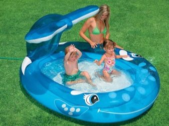 Unlike children's tanks, adult tanks are complemented by a polyester mesh, which gives greater strength. To diversify the bathing of children, make leisure more fun, children's air ponds complemented by accessories. Inflatable toys will add more fun to water activities. Small - will become the props of any game. Large - used as water transport. For example, an inflatable car that holds a baby, “racing” along the waves, will add drive to water fun. The smallest children are required to wear inflatable sleeves and vests.