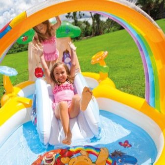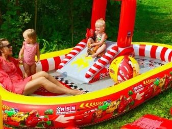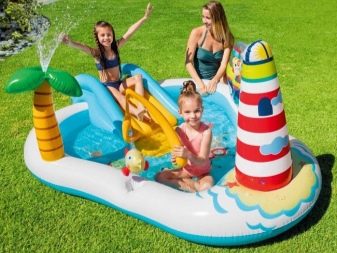 Sure, the main feature of the pools intended for small bathers are all kinds of forms. They are round, square, oval. But it is rather a classic. Suitable for older children and adults. Preschoolers and primary schoolchildren are selected products that repeat the shape of their favorite animals, cartoon characters. Fantastic design, colorful ornaments will amuse the baby, decorate the yard. Entertainment complexes resembling a water park, equipped with slides, labyrinths, fountains, are very popular among boys and girls of young age.