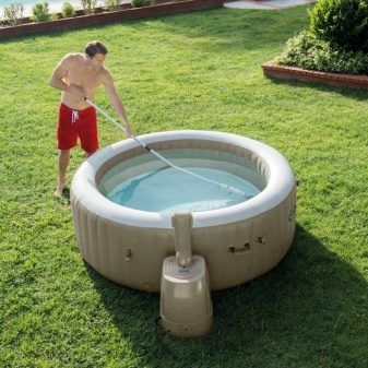 The water balance of the tank is an important issue. Keep the fluid filled clean. Replace regularly. Be sure to thoroughly wash the bottom, sides, emptying the container. The sun causes water to bloom. The sides are covered with mud, causing the development of pathogenic bacteria. But it is worth remembering: water-disinfecting products are not recommended for relatively children's pools, especially designed for the smallest bathers.