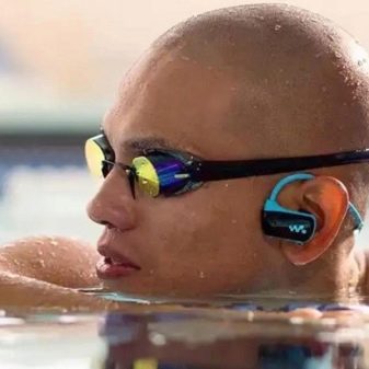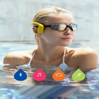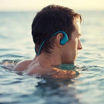 - Models devoid of built-in remotes and microphones, equipped with ear clips and designed only for listening to music in the pool, have a slight degree of water resistance.