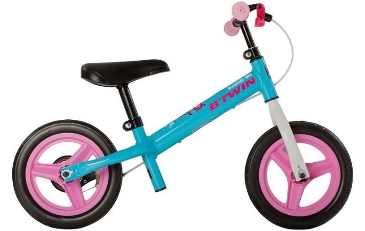 The B'Twin Run Ride 100 model deserves special attention. Using the example of this sample, you can study the pros and cons of B'Twin products in more detail. This is a budget option, and therefore it is more often chosen by parents. Designed for babies aged 2–4 years. Buyers praised the ease of assembly of the bike and its light weight. The model is considered minimalistic and universal, as it equally suits both boys and girls. The height of the saddle is adjustable from 33 to 41 cm and corresponds to the span of the child's legs.