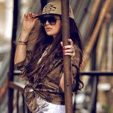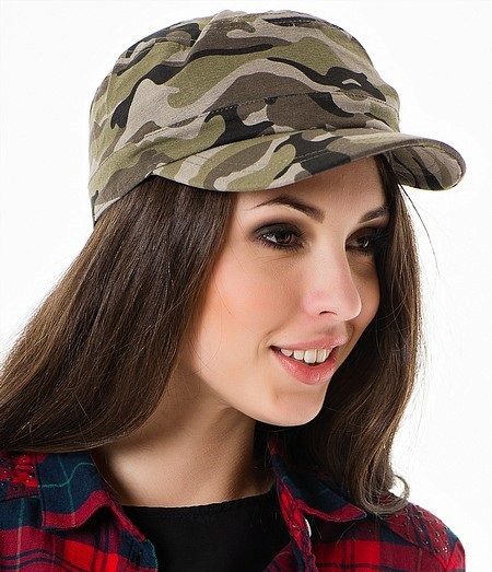 A baseball cap made of camouflage fabric remains quite popular. But the designers softened it by using a characteristic camouflage pattern, replacing its coloring with more feminine tones.