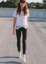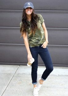 As for the question of what to wear a baseball cap, it goes well with any kind of clothing. But everything, of course, depends on its type. Simple caps go well with trousers, jeans, T-shirts. T-shirts. But a stylish baseball cap decorated with beads or sequins can be tried on with a light dress in heels.