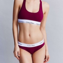 If you have already turned your attention to the Calvin Klein brand, then choosing a specific model will not be difficult. Consider the features of your figure. If your hips are lush, consider shorts. For a neat sports priests thongs are perfect. If the chest is large, give preference to a bra on wide straps - it will reliably support the bust. If small, try wearing a topic - it is convenient and aesthetically pleasing. The Calvin Klein lineup also has push-up bras.