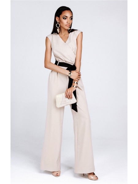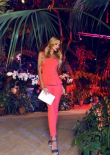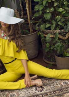 Especially impressive on fashionistas are branded outfits with a belt. This part can be placed on a belt, waist or hips. The place of the textile accessory may well be occupied by a thin strap made of more dense material. For example, it may be a leather model that matches the color of the jumpsuit.